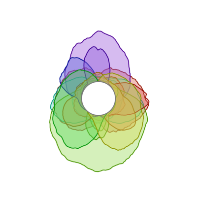These are visualizations of "curve detector" neurons from early mechanistic interpretability research. Learn more in the Curve Detectors article on Distill.